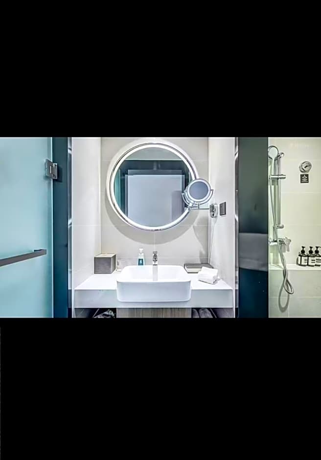 A TV, a microwave, a small fridge and a coffee machine are provided in this room.